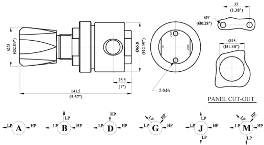 ● 最大输入压力: 500pis ,250,100,50psig, ● 输出压力:0~25,0~50,0~100,0~250psig |
