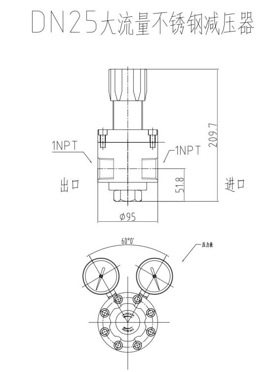 母体螺纹: 进出气接口1-1/4NPT"NPT(F);压力表接口1/4"NPT(F)