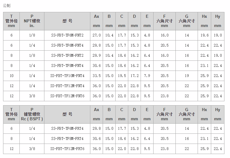 FBT系列内螺纹直三通