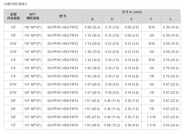 PFHC系列内螺纹软管接头
